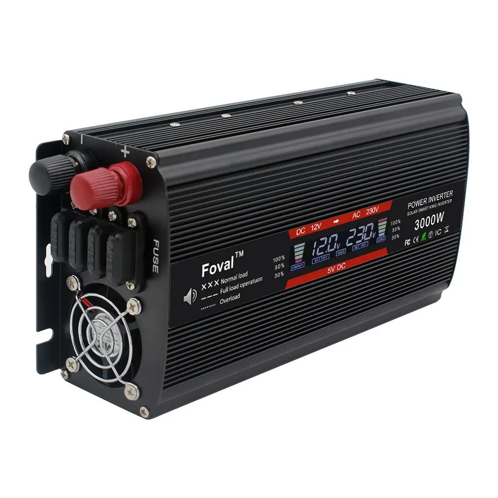 2000 Вт/3000 Вт Инвертор питания модифицированный ЖК-монитор Синусоидальная волна дисплей DC 12V To AC 220V Солнечный 2 USB автомобильный ТРАНСФОРМАТОР ПРЕОБРАЗОВАТЕЛЬ ЕС розетка
