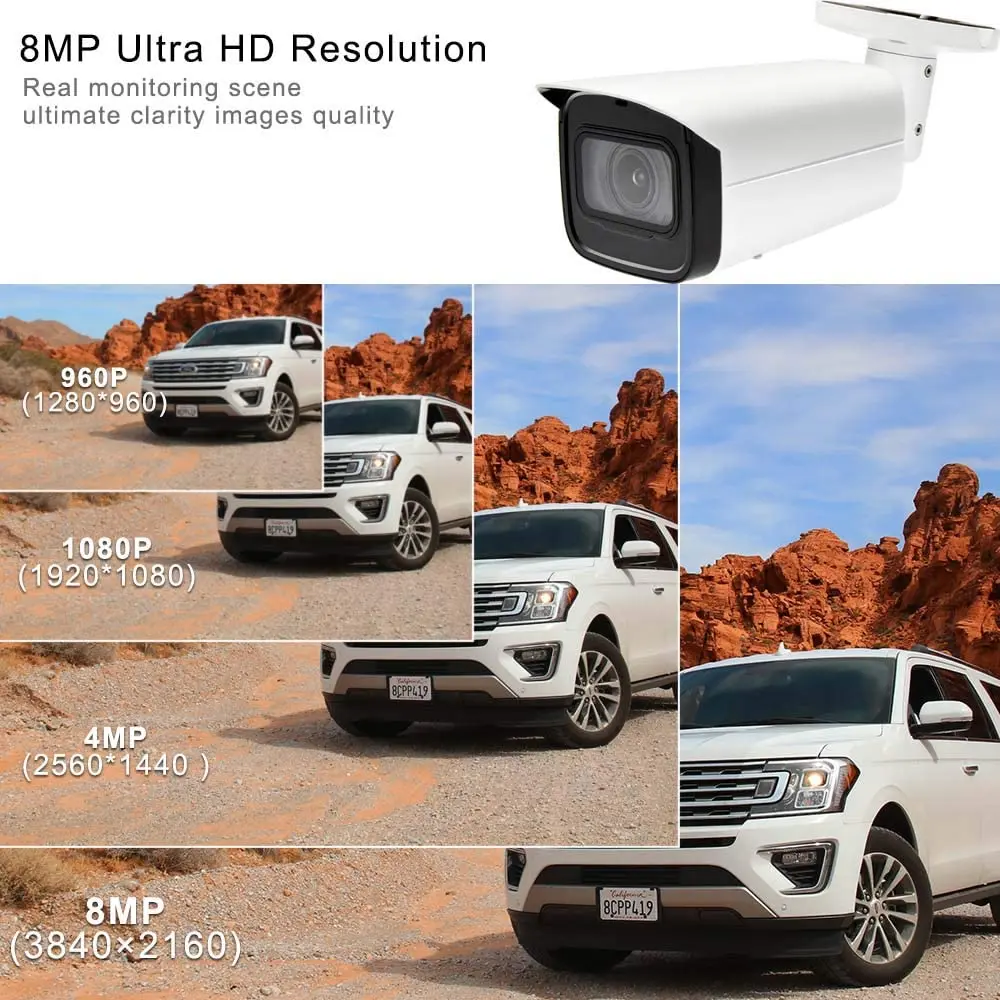 8 м (3840 × 2160); 6 м (3072 × 2048); 5 м (3072 × 1728/2592 × 1944); 4 м (2688 × 1520); 3 м (2048 × 1536/2304 × 1296); 1080p (1920 × 1080); 1,3 м (1280 × 960); 720p (1280 × 720); d1 (704 × 576/704 × 480); VGA (640 × 480); CIF (352 × 288/352 × 240)