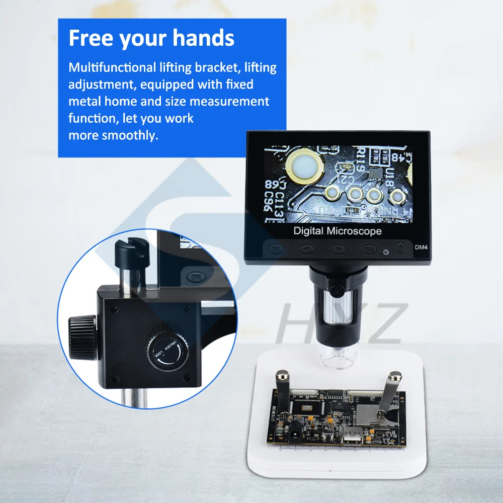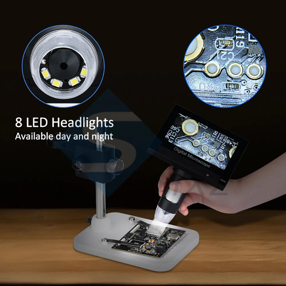 1000x2,0 Мп USB цифровой электронный микроскоп DM4 4,3 "ЖК-дисплей Дисплей VGA микроскоп с 8 светодиодный подставка для материнская плата (PCB), ремонт