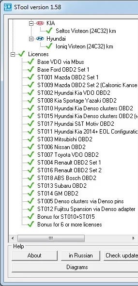 STool / MTool version 1.58Full package includes licenses:License ST001 (Mazda)License ST002 (Hyundai/KIA)License ST003 (Mitsubishi)License ST004 (Renault)License ST005 (Denso)License ST006 (Nissan VDO Nec+24c16)License ST007 (Toyota VDO Nec, Camry V70 VDO)License ST008 (KIA Sportage 2016+ Yazaki Nec+25160)License ST009 (Mazda Calsonic Kansei)License ST010 (Hyundai/KIA Denso 2013+)License ST011 (Hyundai/KIA 2014+ EOL Configuration)License ST012 (Fujitsu via Denso adapter)License ST013 (Subaru OBD2)License ST014 (GM OBD2)License ST015 (Hyundai/Kia Denso OBD2 without Flashing)License ST016 (Renault KWID OBD2)License ST017 (Hyundai S&T Motiv OBD2)License ST018 (ABS Bosch OBD2)ATTENTION!!!ELM327 adapter is no longer supported from version 1.52. Connection ONLY via ELS27adapter. For ELM327 use previous versions of Stool software.Note:mtool/stool softawre is in mega link,we will send you software link when you get the pracel .