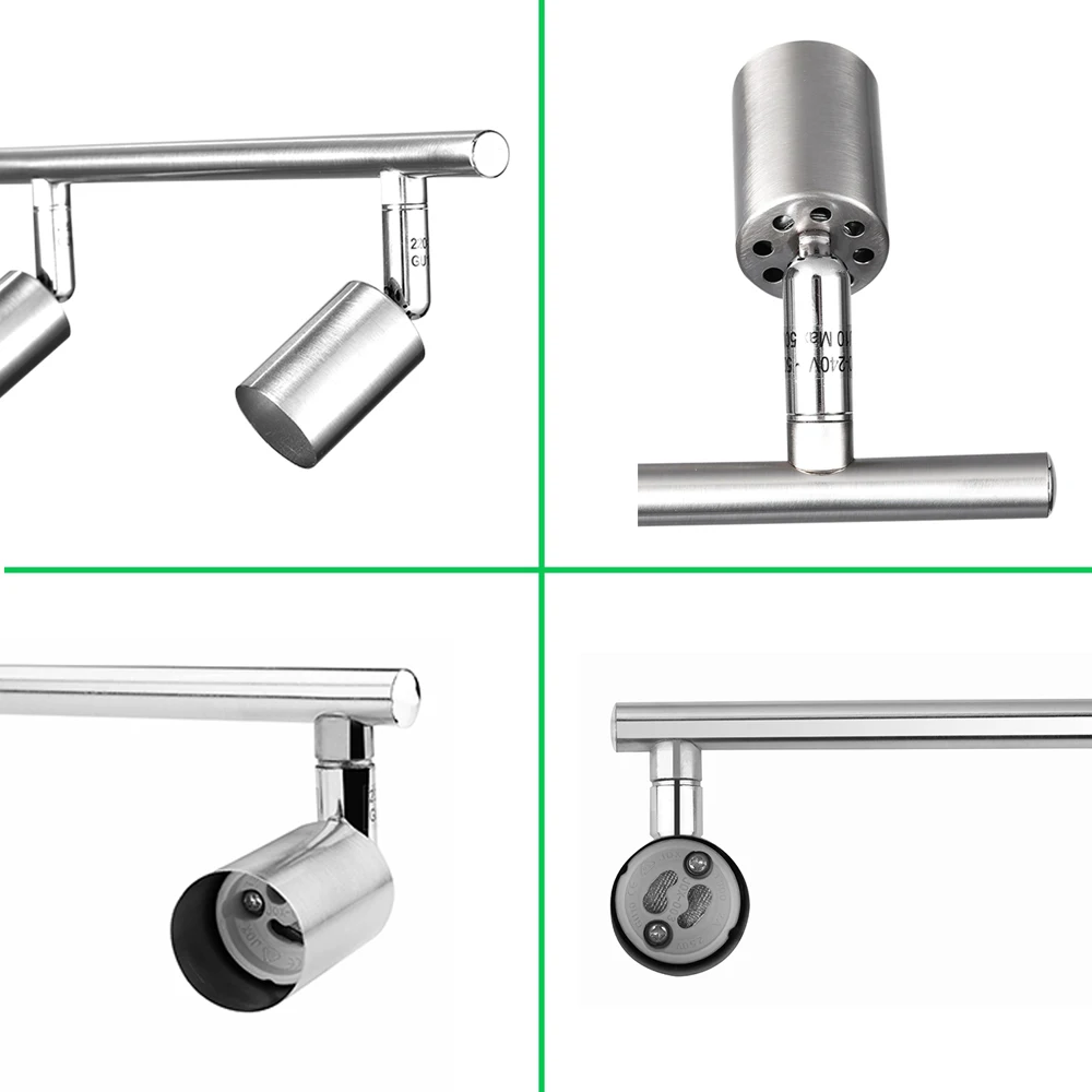 1x4 головы трек освещение комплект бар1X Руководство пользователяЦвет: черный/серебристыйВес изделия: 0,68 кг (4 головки)Размеры изделия:Материал: металлОтделка: сатинКоличество ламп: 4 (не входят в комплект)В комплект входят следующие компоненты: светильник-трек, монтажное оборудование, комплект для инструкций, светодиодный светильник-трек, лампы в комплект не входят