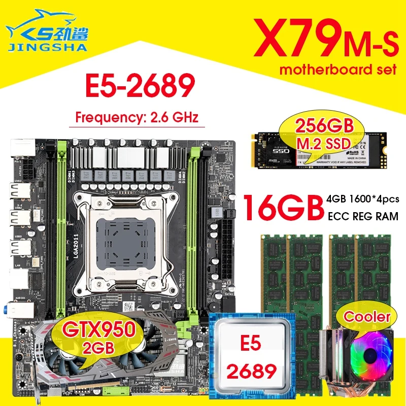 Наш комплект материнской платы включает материнскую плату, 1 * CPU и 4 шт. * 4 Гб RECC RamGTX 950 2 Гб, четырехтрубный медный кулер, 256 ГБ NVME M.2 SSD
