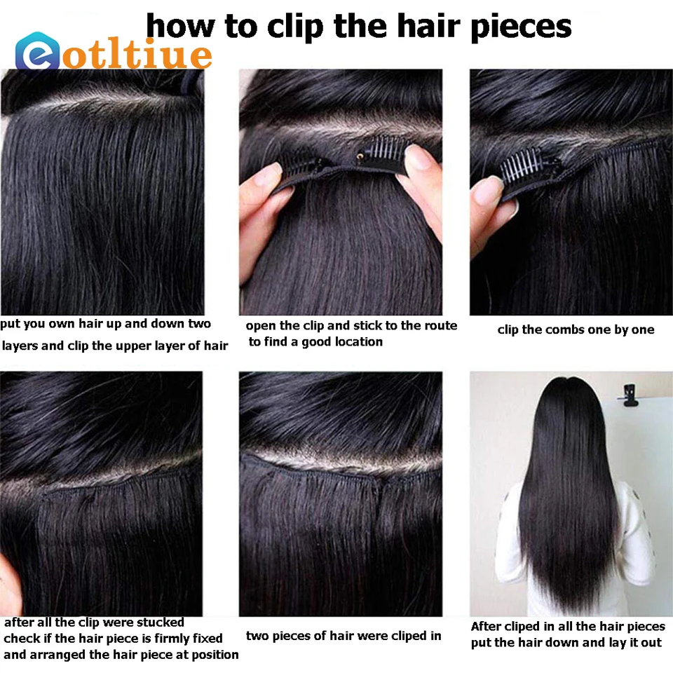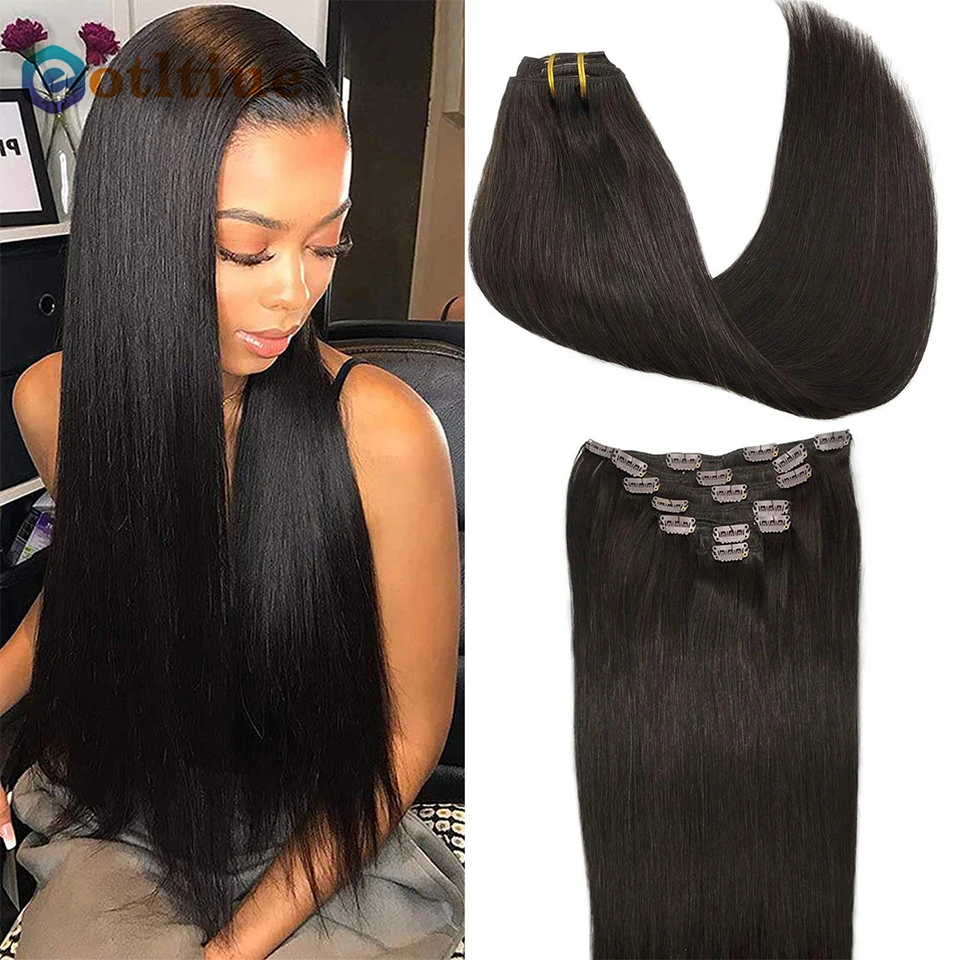 Eotltiue прямые человеческие волосы на заколках для наращивания для черных женщин необработанные волосы на всю голову бразильские волосы 7/шт с 16 клипсами