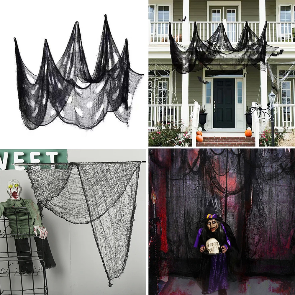 Газовое украшение на Хэллоуин, супер размер, жуткая ткань, украшение на Хэллоуин, портативная черно-белая сетка, вечерние принадлежности, марля