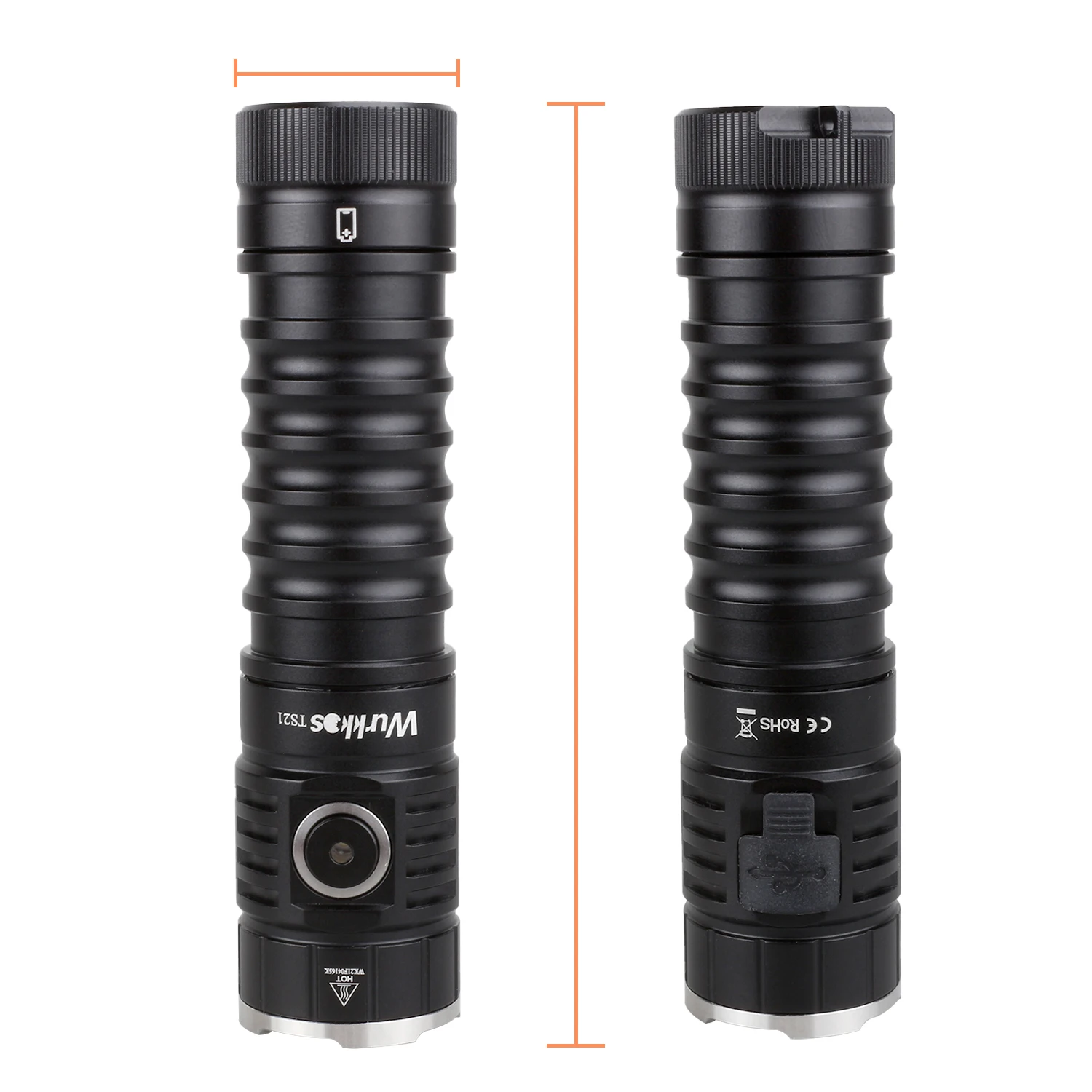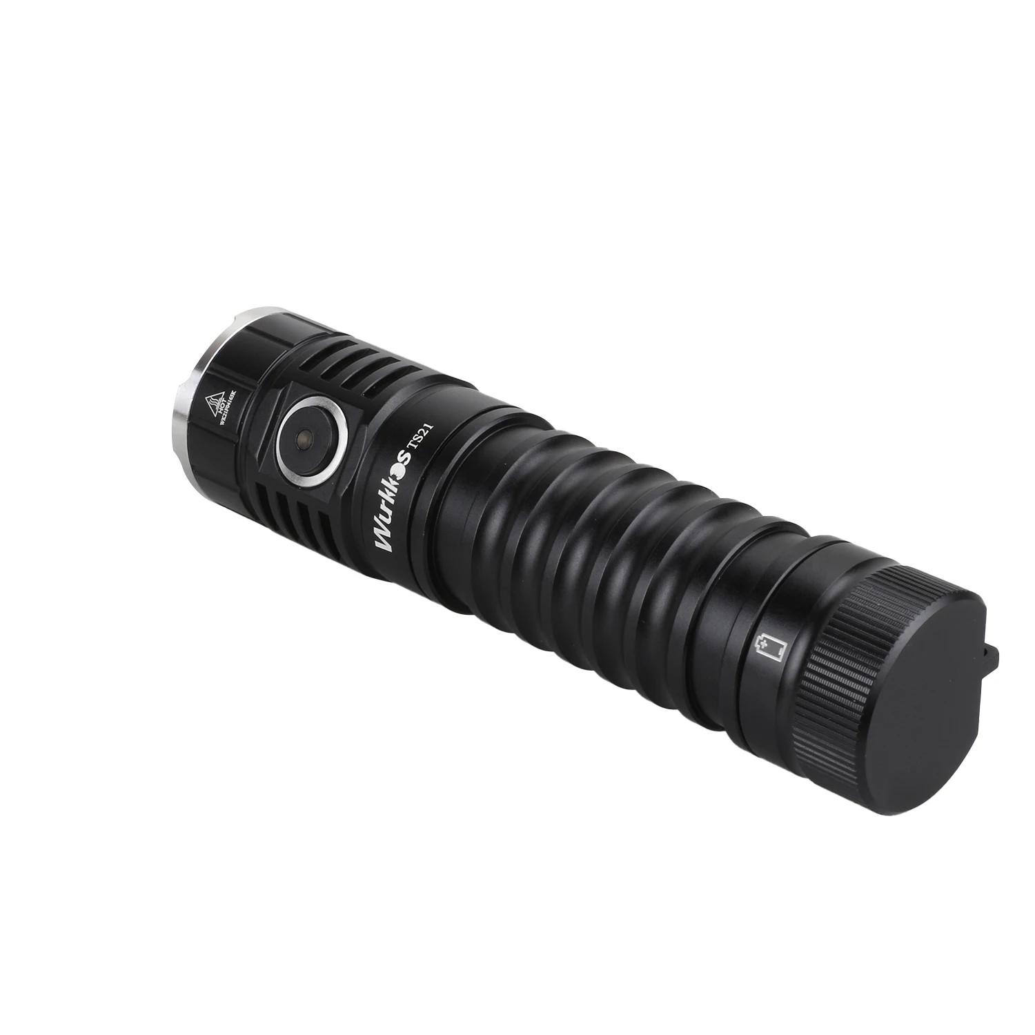 TS21 delivers a maximum output of up to 3500 lumens with a maximum range of 217 meters. Its side switch controls all functions: power on/off, battery indicator, output level and change of mode groups. The sophisticated Andúril UI provides a both user friendly and highly flexible interaction as well as simple one-hand operation.
