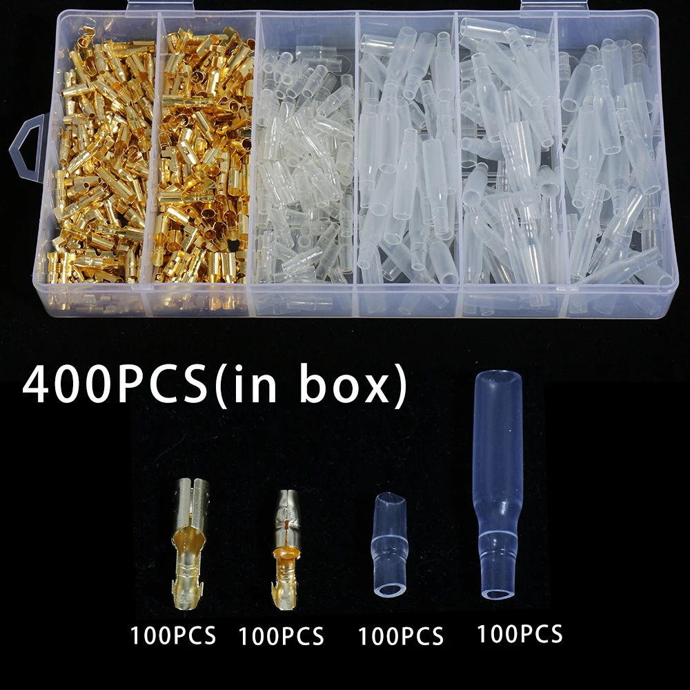 600/400pcs Wire Crimp Bullet Terminals Connector Female Male set 4.0mm Diameter Brass Sleeves Plug type Car Motorcycle
