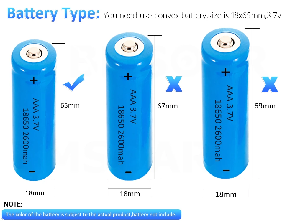 The camera need use 8pcs 18650 2600mAh convex battery , size is 18x65mm,3.7V