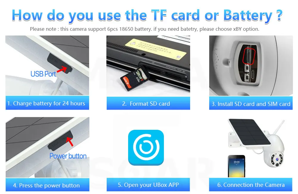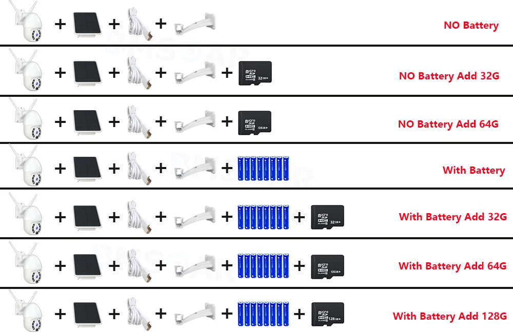With Battery Add 128G= 1pcs Solar Camera + 8pcs 18650 Batteries + 1pcs 128GB Card