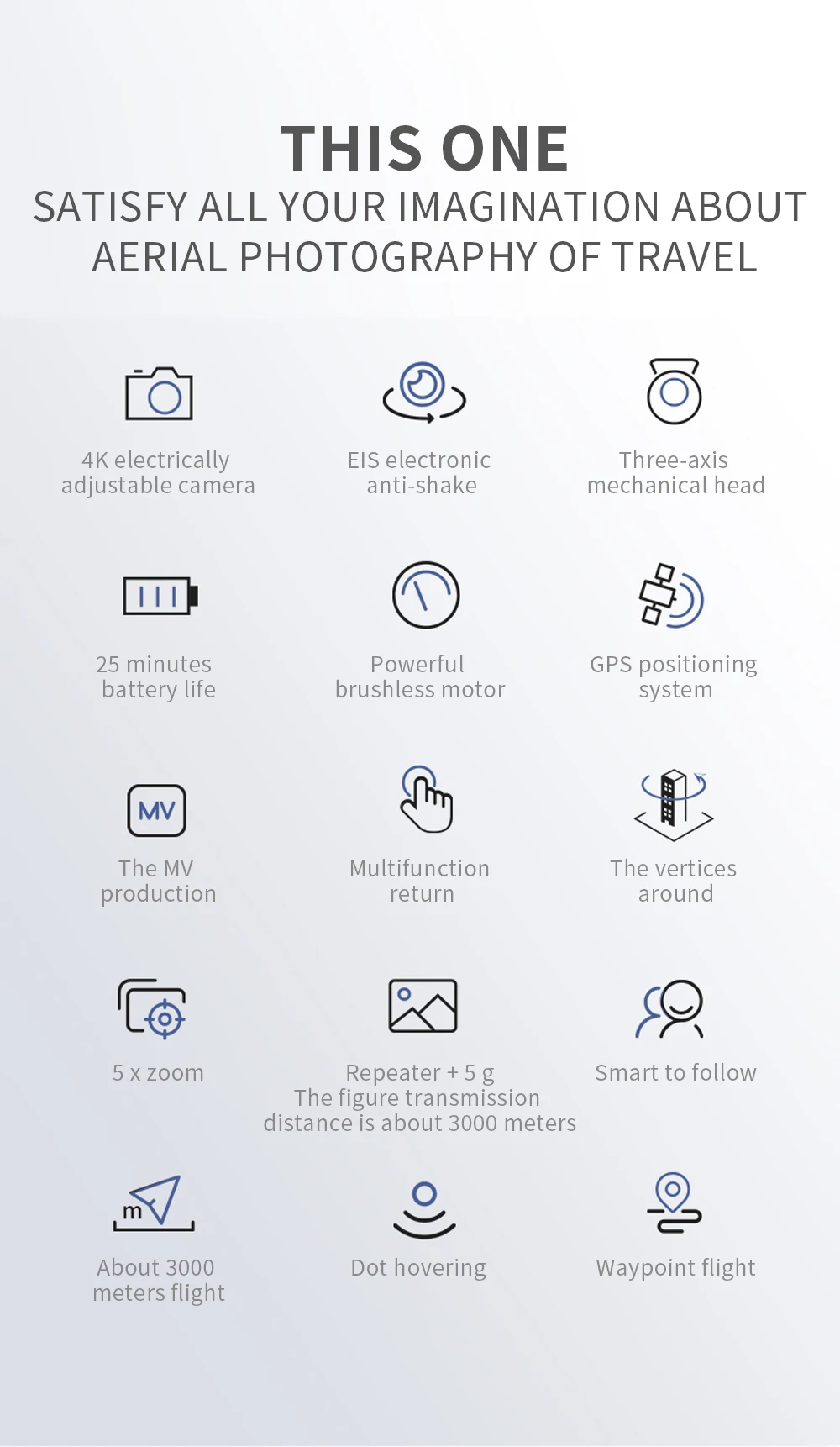 3: точное позиционирование, с GPS точным позиционированием, может достичь возврата одной кнопки, без возврата сигнала, низкое энергопотребление, во избежание потери полета