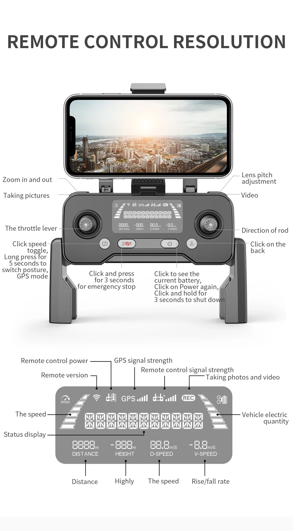 6: интеллектуальное слежение, объемный полет, управление ладонями, позиционирование карты в реальном времени, БПЛА, карта вне управления, планирование маршрута, управление через приложение мобильный телефон, возврат одной кнопкой, вверх и вниз, вперед и назад, левая и правая сторона полета, автоматическое переключение оптического потока/GPS