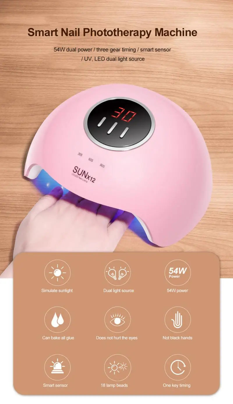 Может использоваться для сушки основного лака для ногтей, лака для ногтей, фототерапевтического клея и т. д.