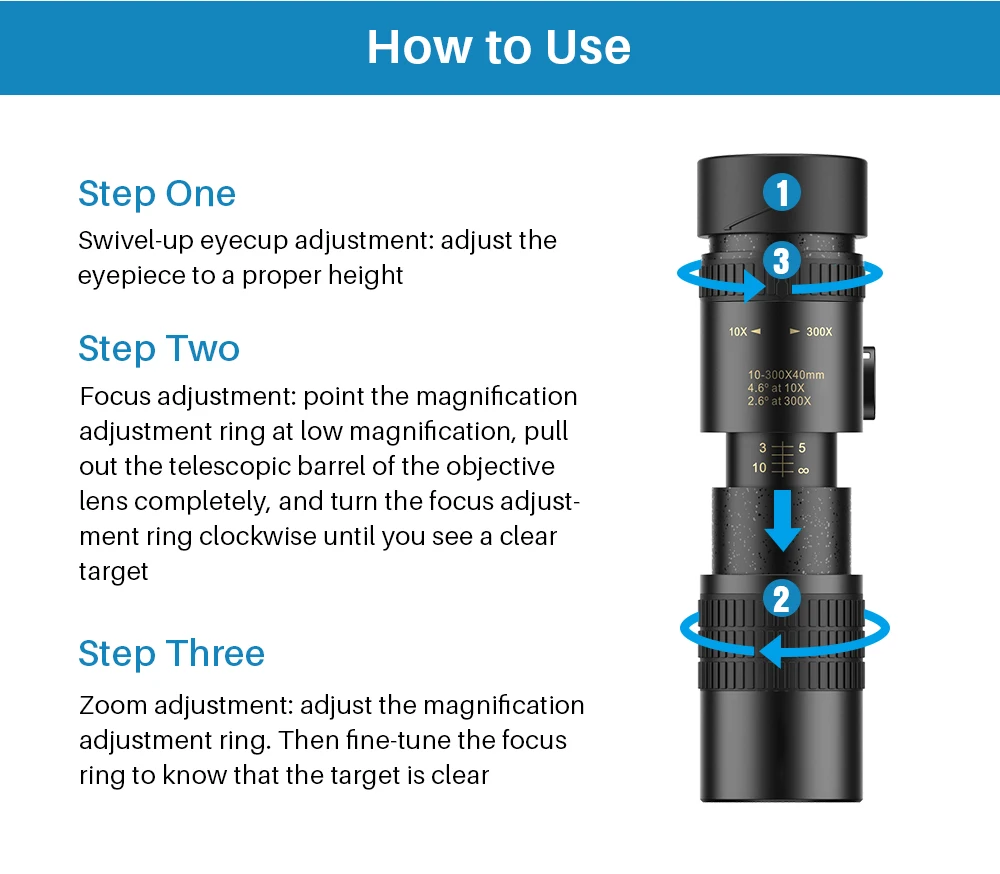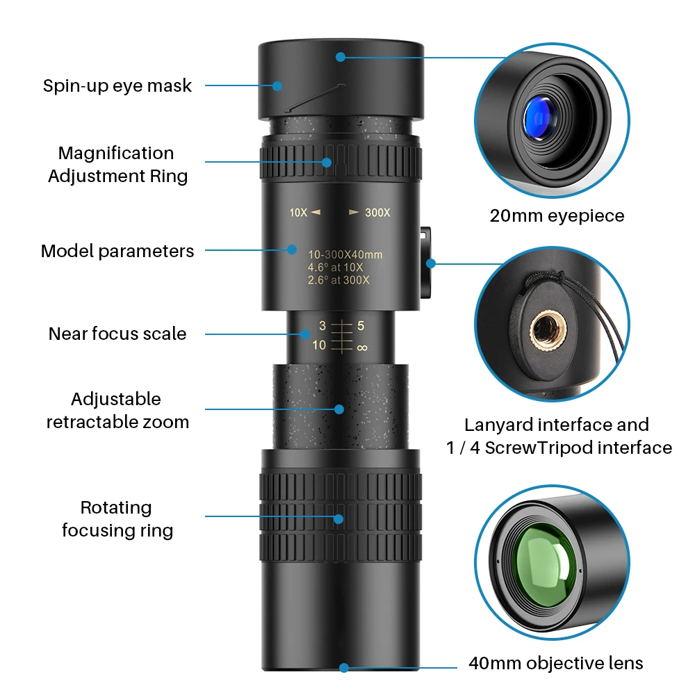 1x 10-300x40мм Монокуляр