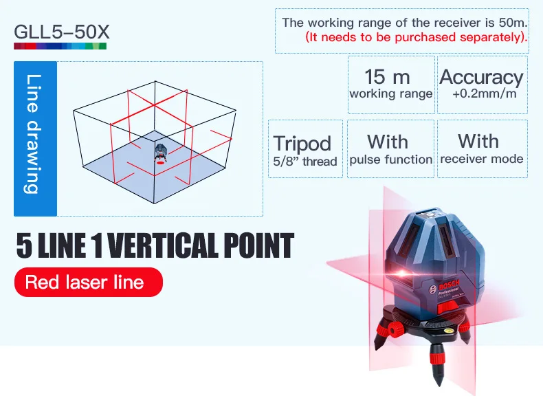Лазерный уровень Bosch 5 линий/3 линии инфракрасный лазерный маркер GLL5-50X/GLL3-15X самонивелирующийся вертикальный и горизонтальный линейный уровень