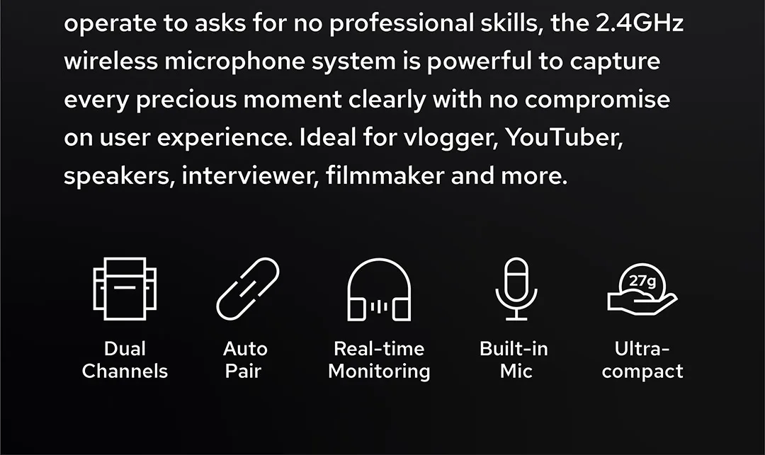 Godox MoveLink открывает новую дверь для всех создателей контента. Обработка хорошо bothin короткой и длинной передачи аудио, расстояние больше не будет ограничивать Вашу запись. Lightweighand достаточно компактный, чтобы быть незаметной и простой в эксплуатации, the2.4GHzwireless микрофон Система мощная, чтобы запечатлеть каждый драгоценный момент с кристально чистым звуком. Идеально подходит для forvlogger, YouTuber, speaker, interviewer, filmmaker и многое другое.