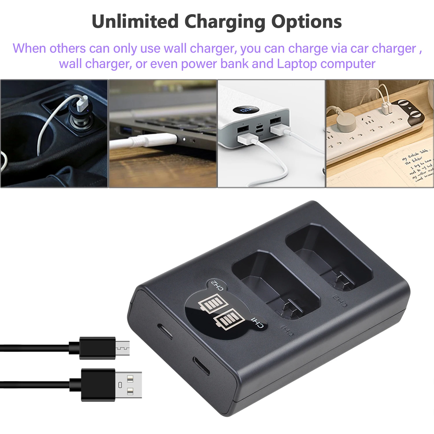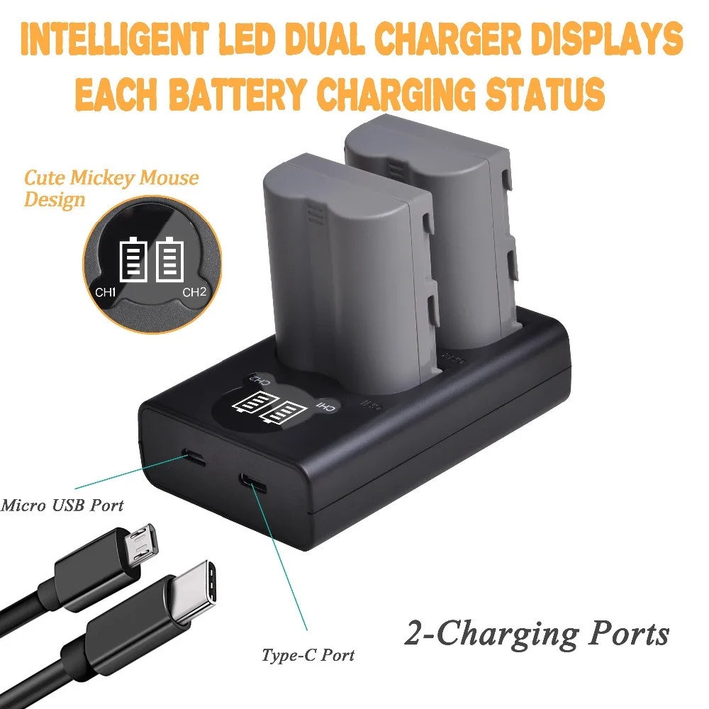 Аккумулятор EN-EL3e 2000 мАч + двойное зарядное устройство с портом type-C