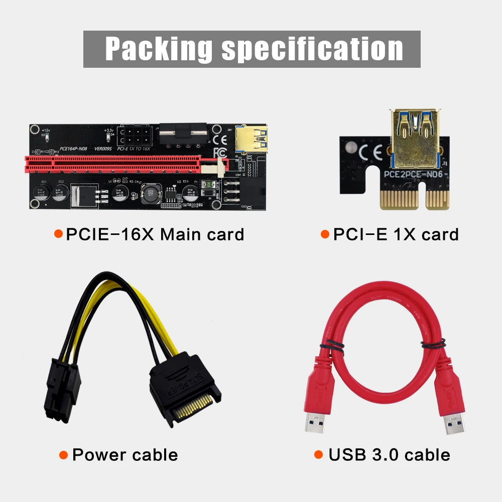 1/5 шт. TISHRIC PCI PCIE Riser 009/009S Plus Mining Graphics Card PCI-E 16x Riser Sata to USB Riser для видеокарты Mining Adapter