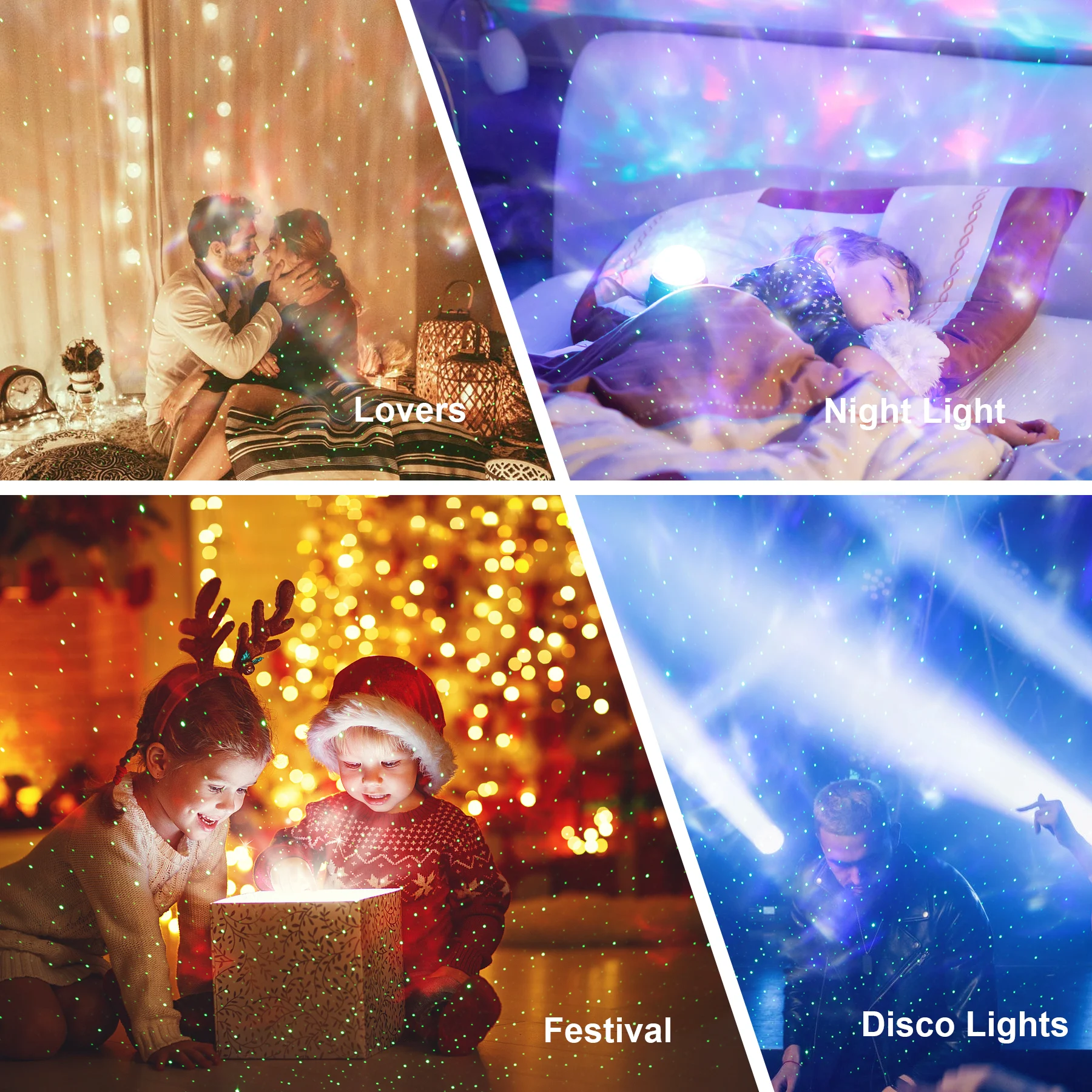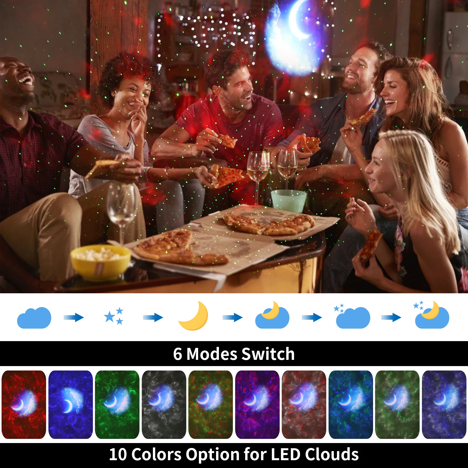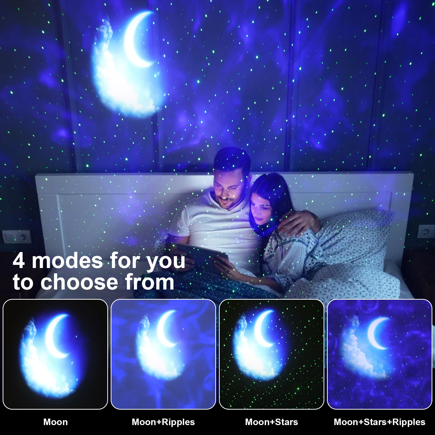 2. Есть много красивых красочных узоров, которые будут настроены. Проекция на потолке и стене красива и возможна.Режимы управления: управление музыкой, автоматический режим и режимы MP3: