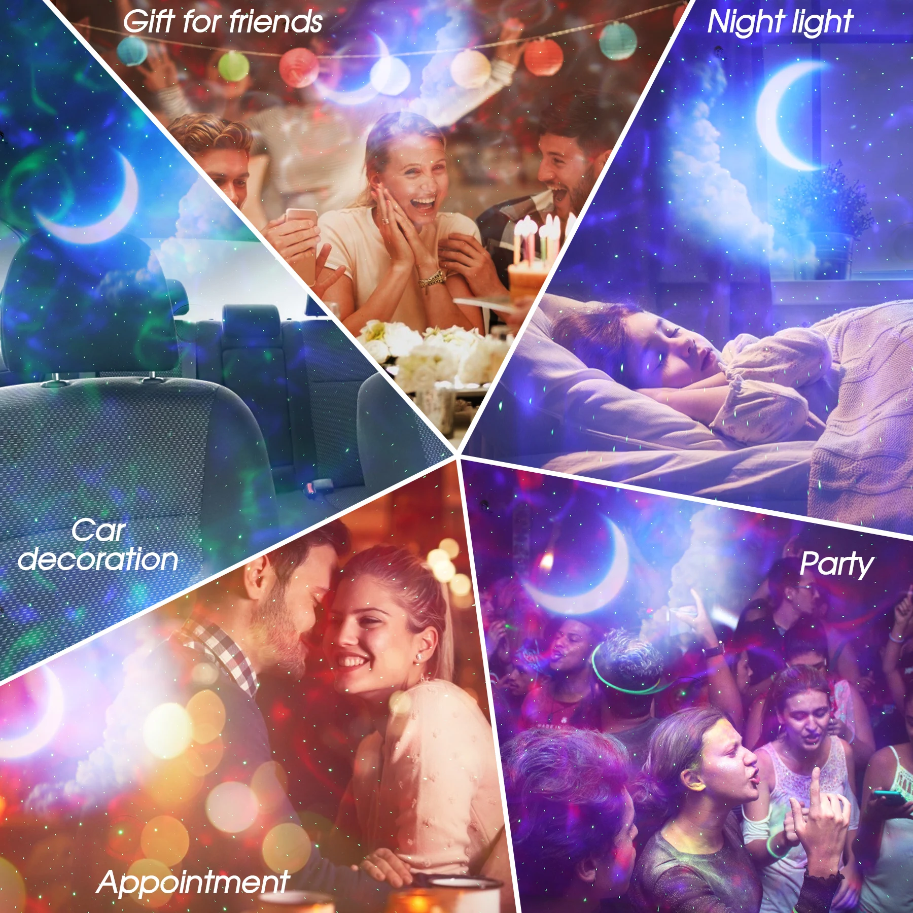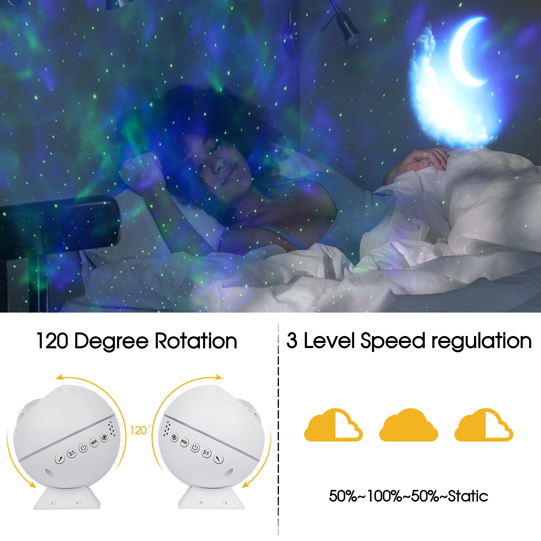 Название продукта:Портативная сферическая проекционная лампа звездного неба, многоцелевой автомобиль + дом (модель белого облака Луны)
