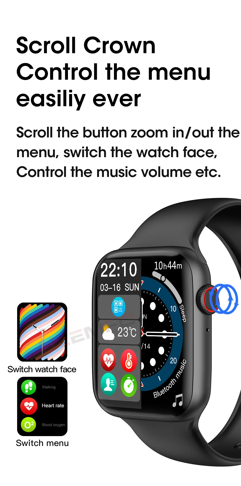 Прокрутите кнопку увеличения/уменьшения меню, переключите циферблат часов, Управляйте громкостью музыки и т. д.