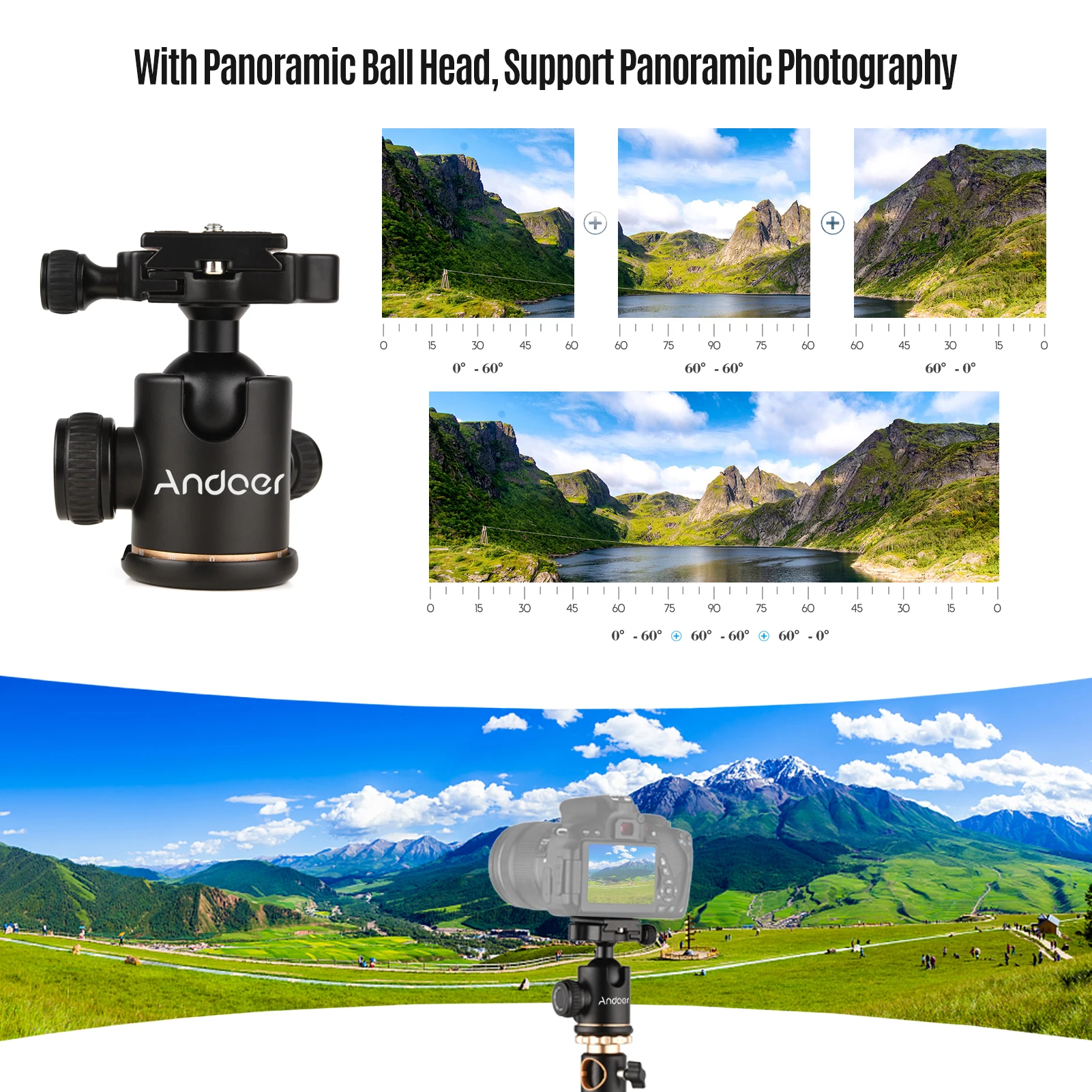 Широкий совместимый штатив:Несущая способность 10 кг/22 фунтов и стандартный винтовой разъем 1/4 дюйма делают штатив совместимым с большинством DSLR камер, DVs, цифровых камер, видеокамер, держателей телефонов и т. д. Подходит для горизонтальной панорамной фотографии, низкоугольной фотографии, макросъемки и т. д.