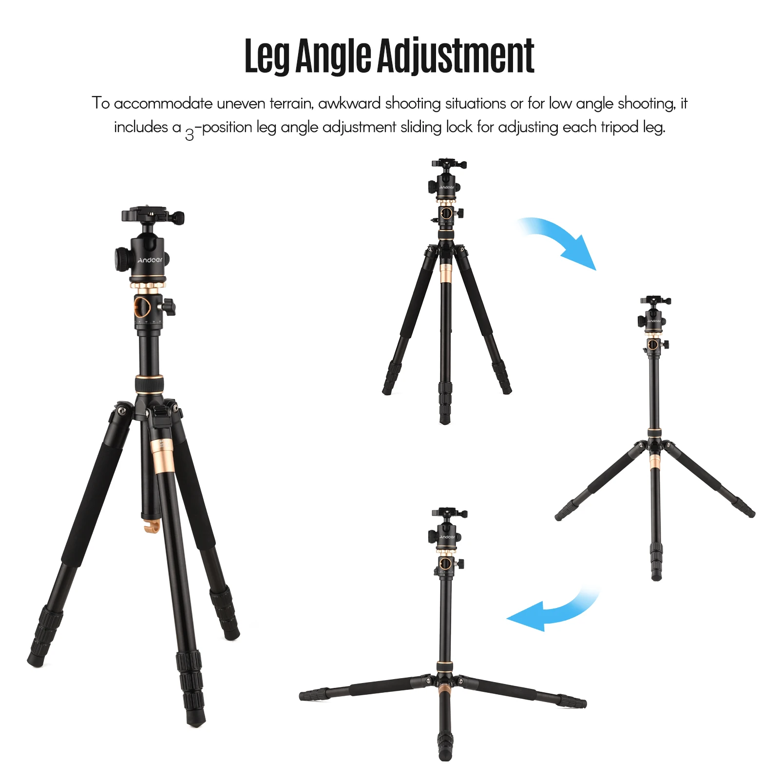 Штатив для фотосъемки Andoer с гибкой шаровой головкой-лучший выбор для съемки на открытом воздухе или в студии. Не только легкий, но и гибкий и складной дизайн сделают Вашу съемку более стабильной и приятной.