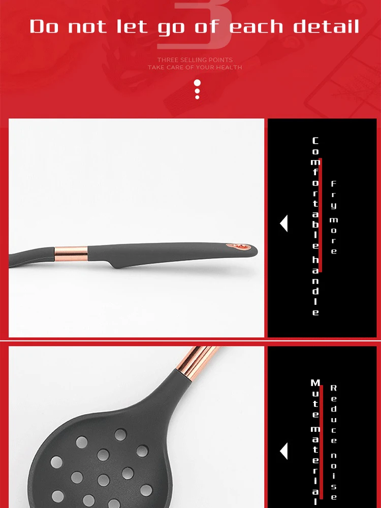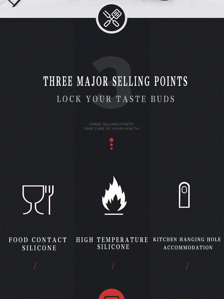 3. Не деформируется, может выдерживать перепады температуры-40 ℃ ~ 230 ℃, высокая температура приготовления пищи, зеленый и здоровый, нет специфического запаха, удобное хранение, конструкция подвесного отверстия означает, что вы можете иметь его, не беспокоясь, использовать его.