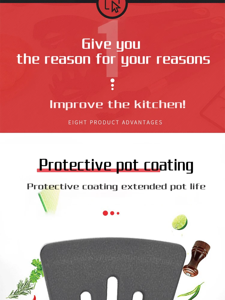 1. Мощные функции: нет повреждений горшка, нет повреждений горшка, защита горшка и супа. Этот набор столовых приборов может быть завершен.