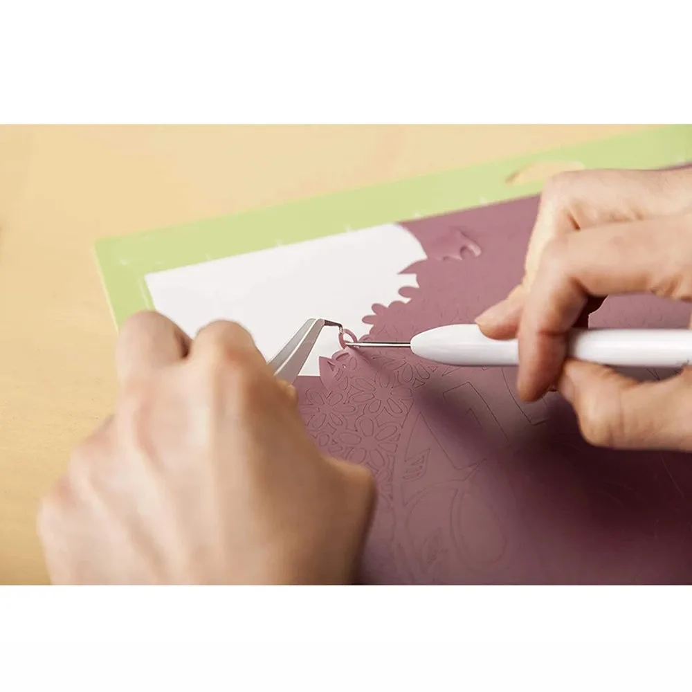 2. Инструмент-крючок идеально подходит для удаления крошечных порезов, включая отрицательные кусочки винила и железа-на листе перевозчика, или извлечения крошечных отрицательных кусочков из вырезанного изображения карты.