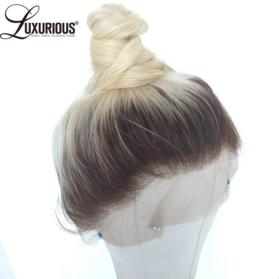 Platinum Blonde Human Hair Wigs Straight 4T613 Brazilian Hair 613 Lace Frontal Wigs Transparent Lace Wigs With Dark Brown Roots