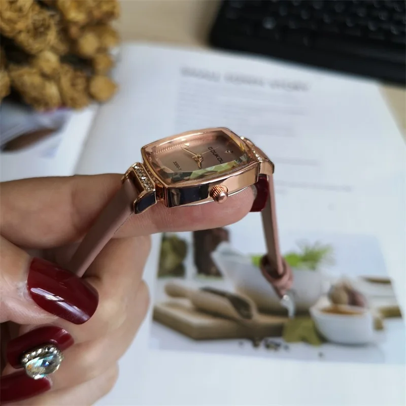 Tonneau Роскошные модные женские часы качества бриллиантовые женские кварцевые кожаные Наручные часы с простым циферблатом маленькие женские часы