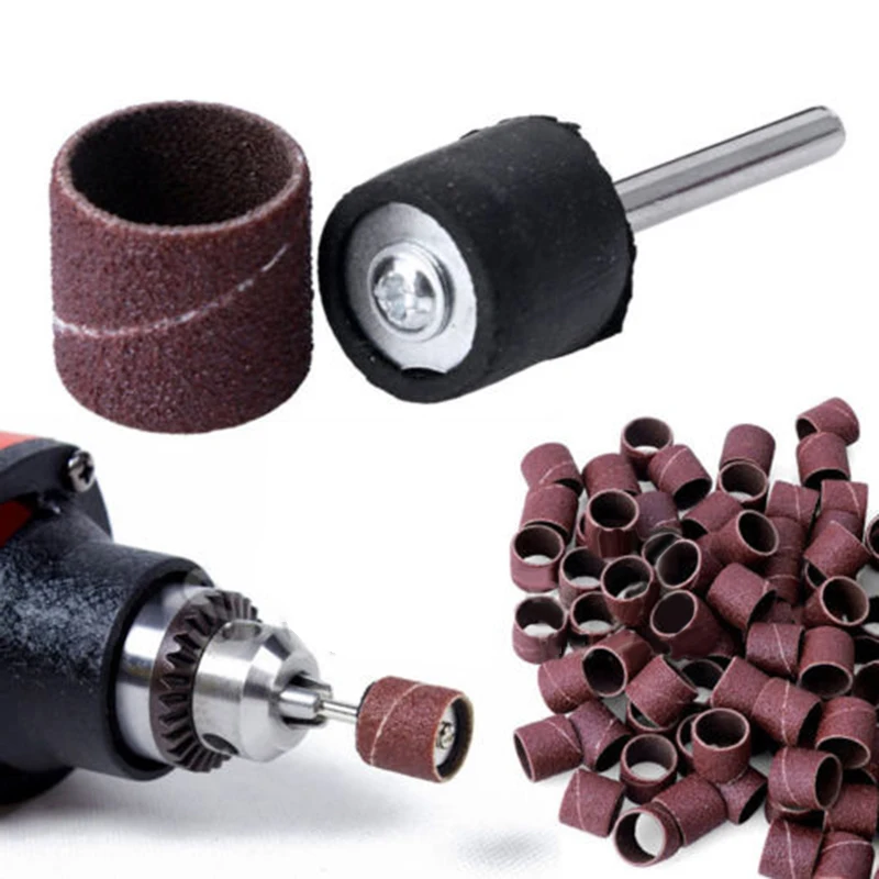 * 100 шт 1/2 "80 песчинки Шлифовальные барабанные Ленты рукава W/ 2 оправы для роторного инструмента