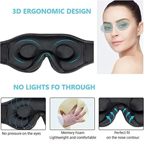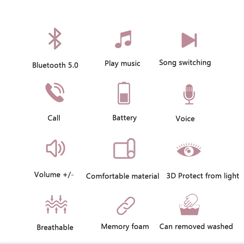 Новый дизайн-эта модель bluetooth-наушников для сна является новейшим дизайном и уникальным на рынке! Контуры области глаз глубже, так что ваши глаза могут свободно двигаться и мигать, эффективно блокируя 100% света, чтобы создать абсолютную темную зону. Наша маска для глаз подарит Вам комфортный и продолжительный сон.