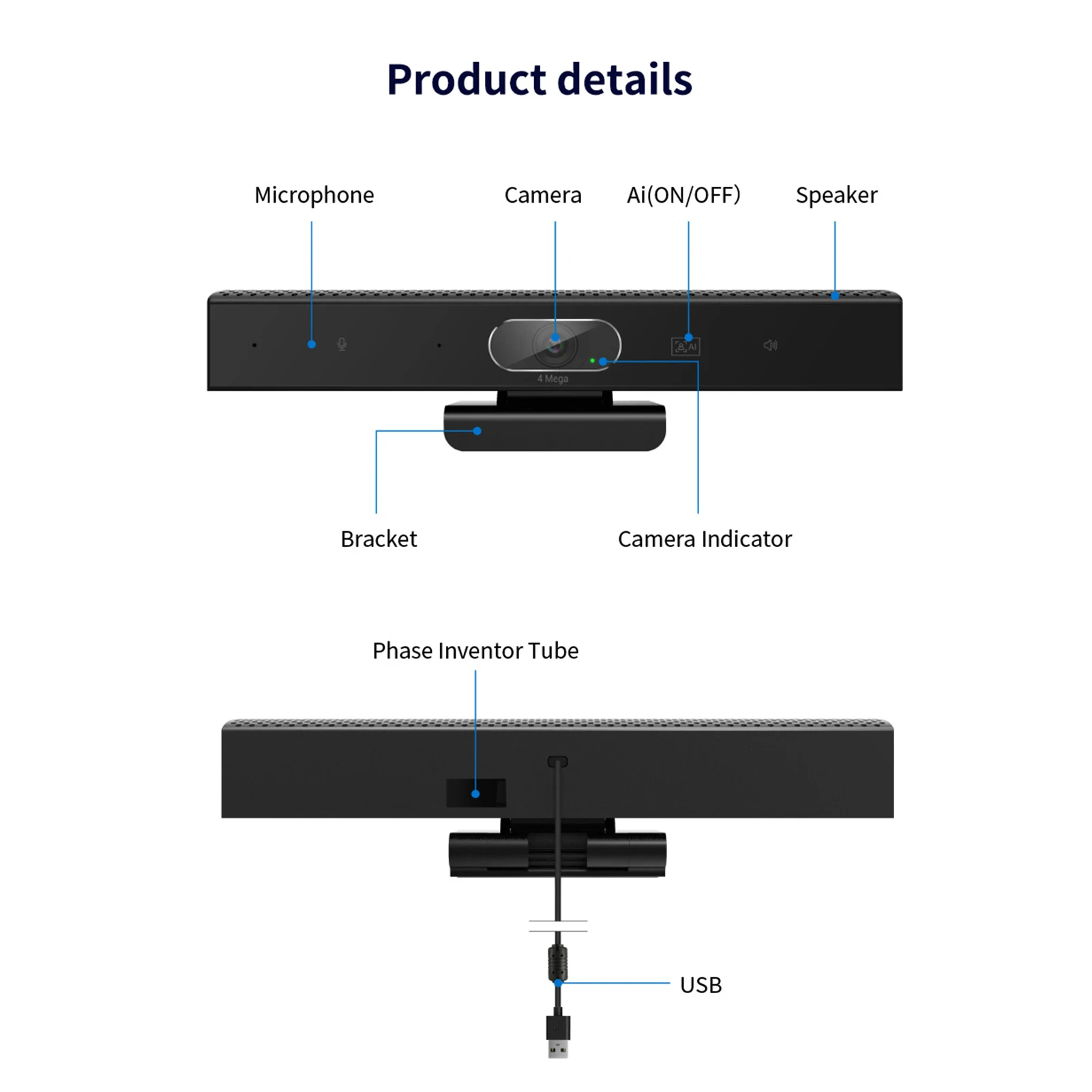 3-in-1 Webcam: Integrated with HD camera, microphone and speaker, 4 megapixel fixed focus, 360° omnidirectional pickup, ideal for small and medium-sized meetings.