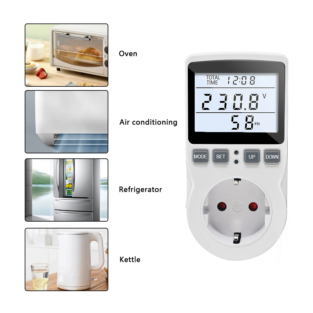 Измеритель переменного тока, розетка 220 В, вольтметр, амперметр, цифровой ЖК-дисплей, ваттметр, мощность кВт/ч счетчик энергии, анализатор выходной мощности