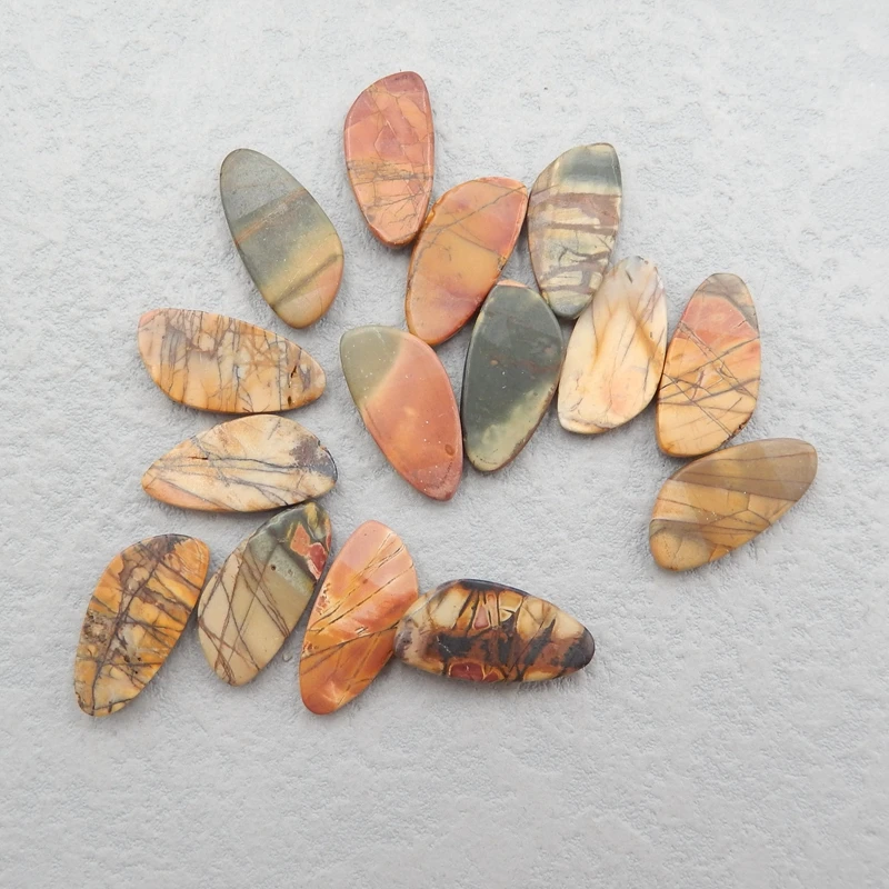 Натуральные 15 шт Разноцветные Пикассо яшма, полудрагоценные ювелирные аксессуары кабошоны бусины для сережек 20x10x3mm18g