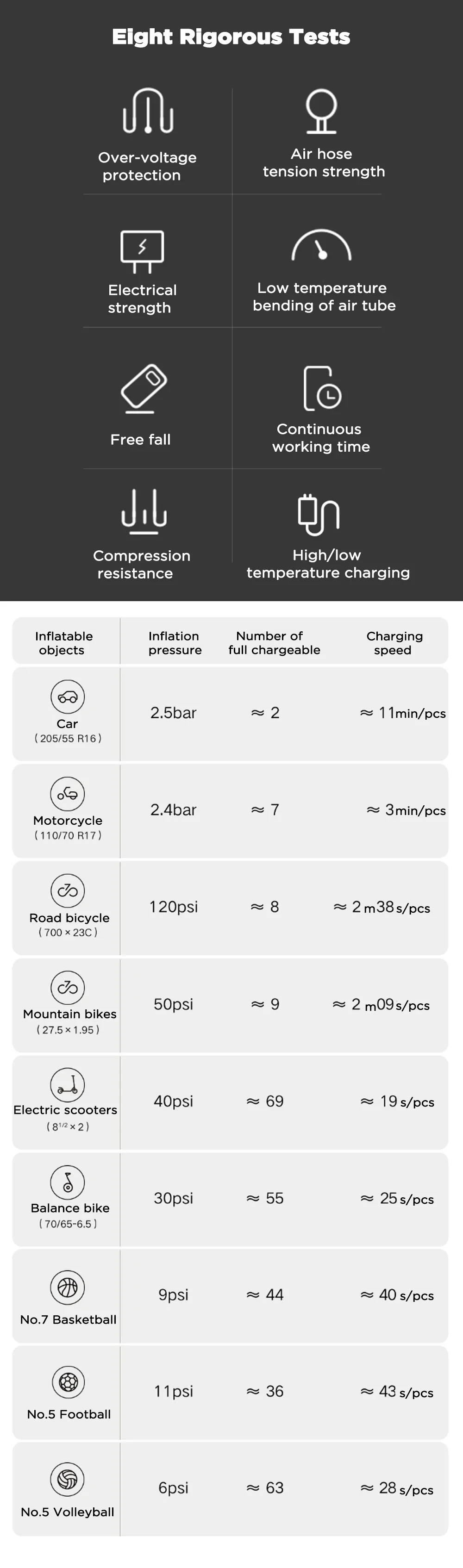 ★Срок службы надувной батареи увеличен примерно на 45.4%, может заменить около 8 шин.