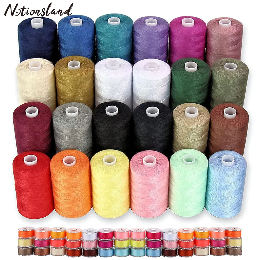 About this item + 24 Pcs 1000 Yards sewing thread spools and 25 pcs prewound bobbins with 25 different color. Bright and vibran, meet the requirement of projects needing variety of colors. +100% Polyester thread, sturdy and durable, it will not be fraying, breaking and tangling up easily. + Suitable for sewing machine and hand sewing use. Works well for a variety of sewing projects. +Perfect Gift - It is a perfect gift for your friends and family. With these sewing threads, you will complete your DIY sewing easily.