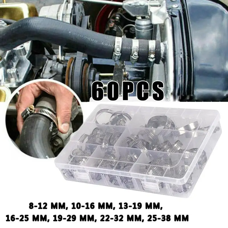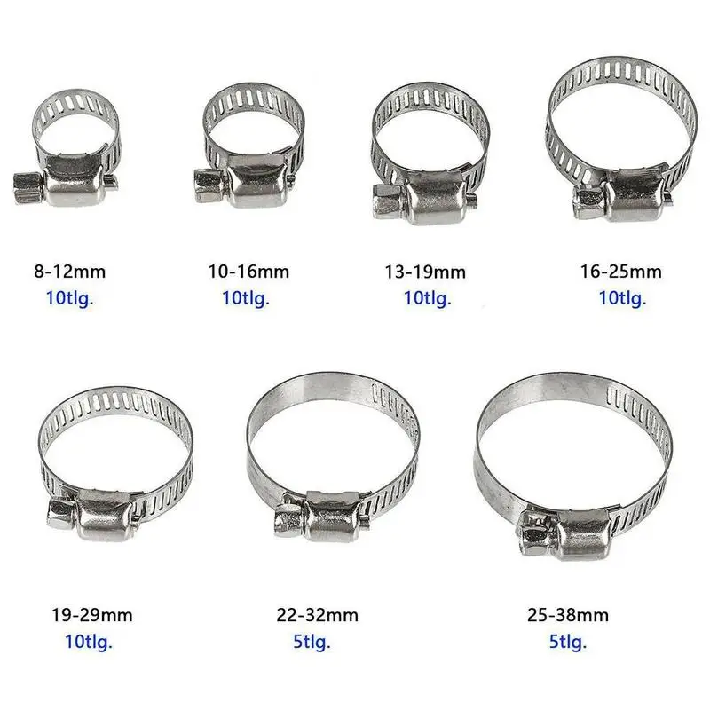 * 60tlg 8 38 мм Qualitäts-Edelstahl-Schlauchklemmen-Kombinations-Installationssatz