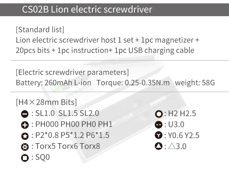 Диапазон крутящего момента: 0,25-0.35N.M режим Chaarging: USB зарядка