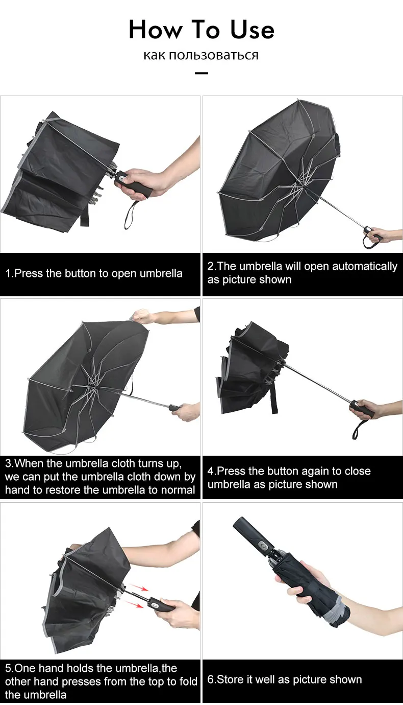 После открытия зонта, вам нужно перевернуть зонтик рукой.