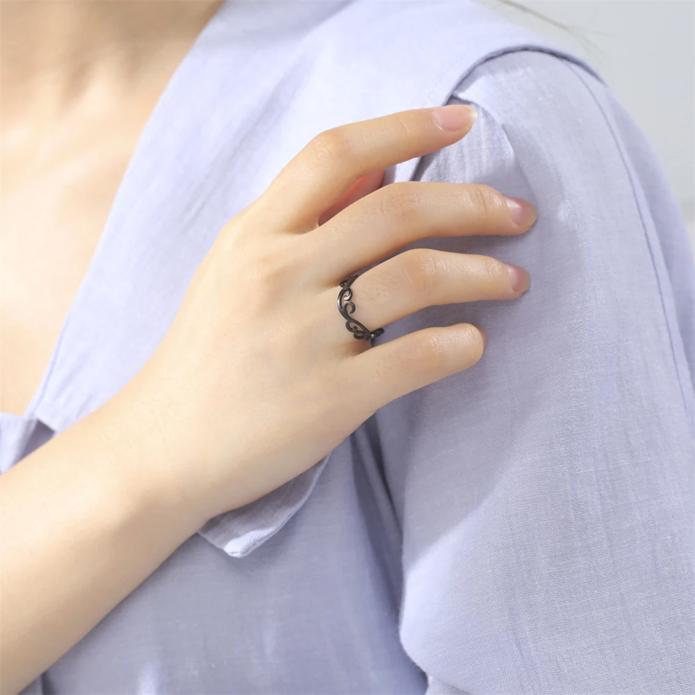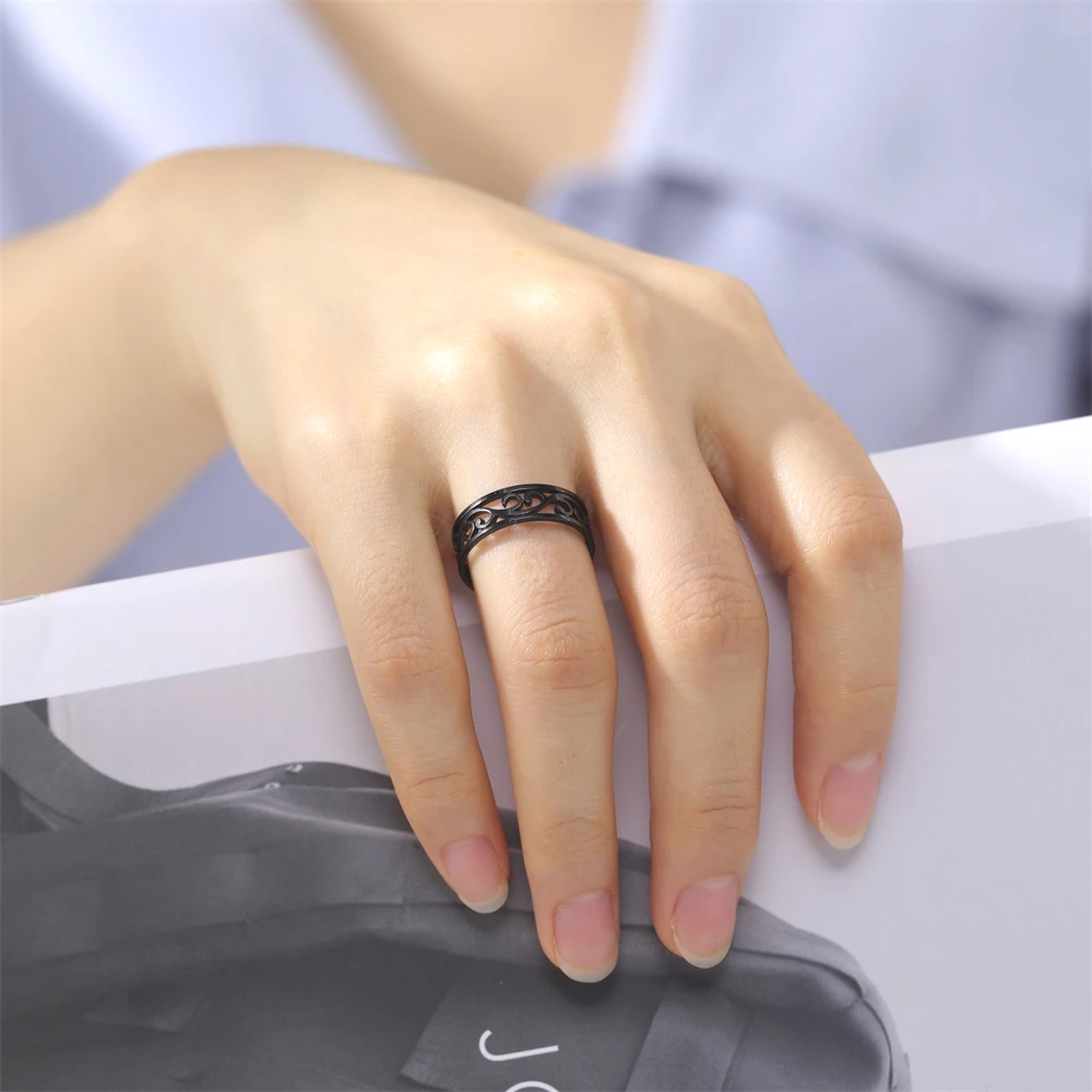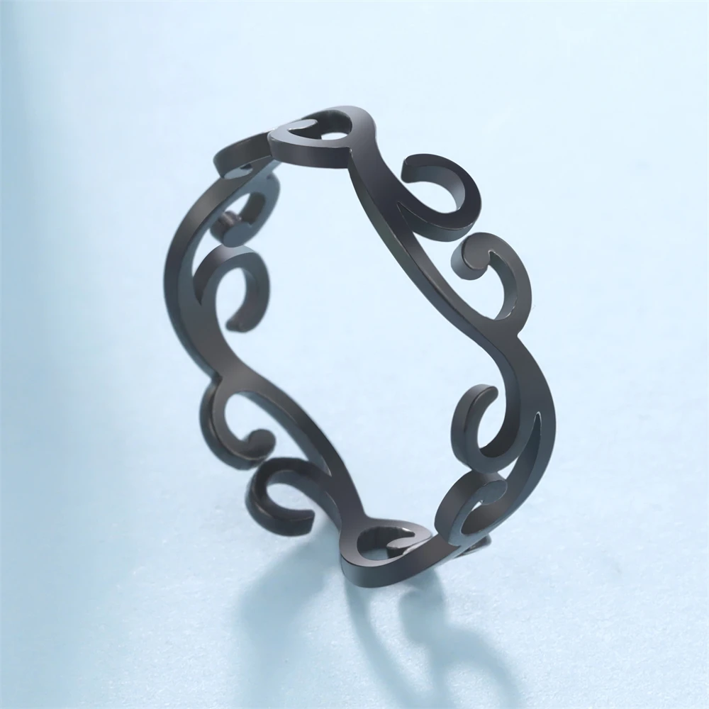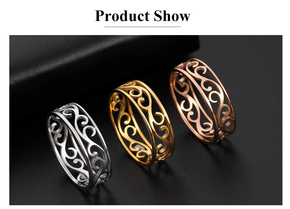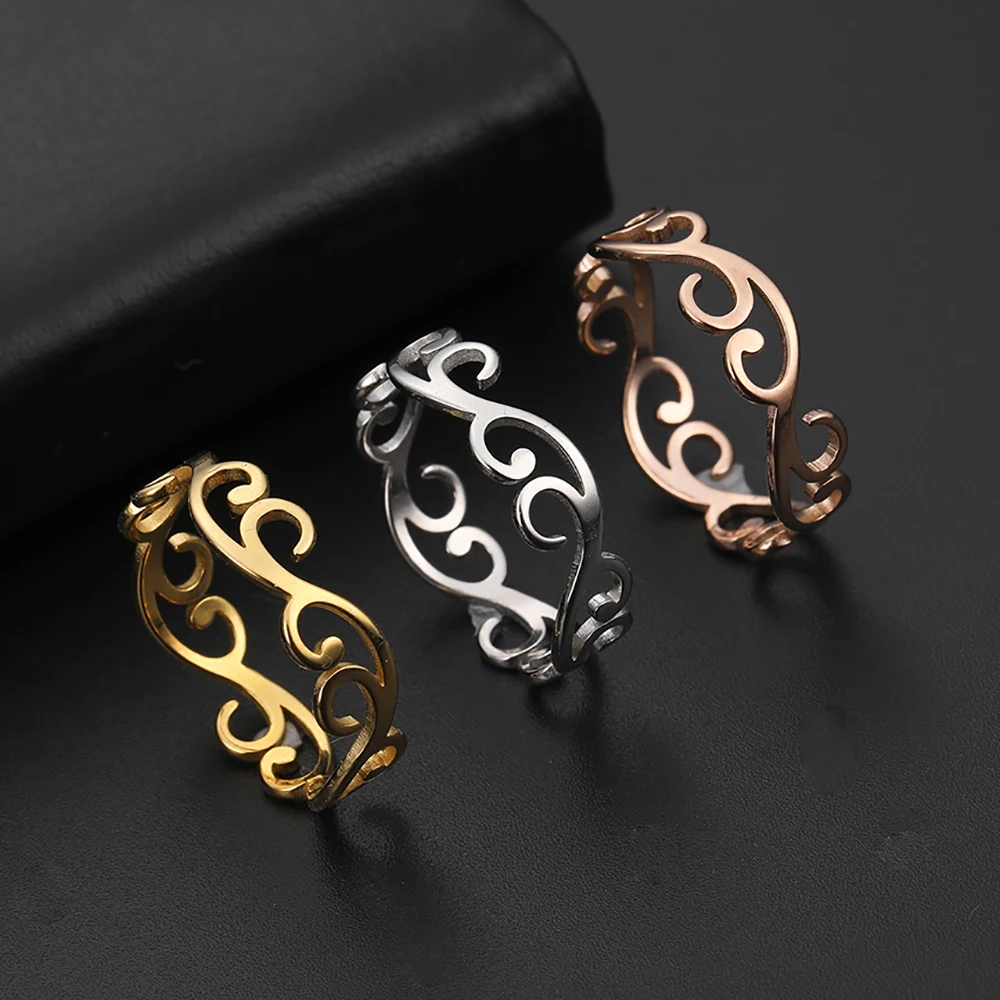 Gold Color Retro Filigree Ring For Women Stainless Steel Cutout Finger Couple Rings