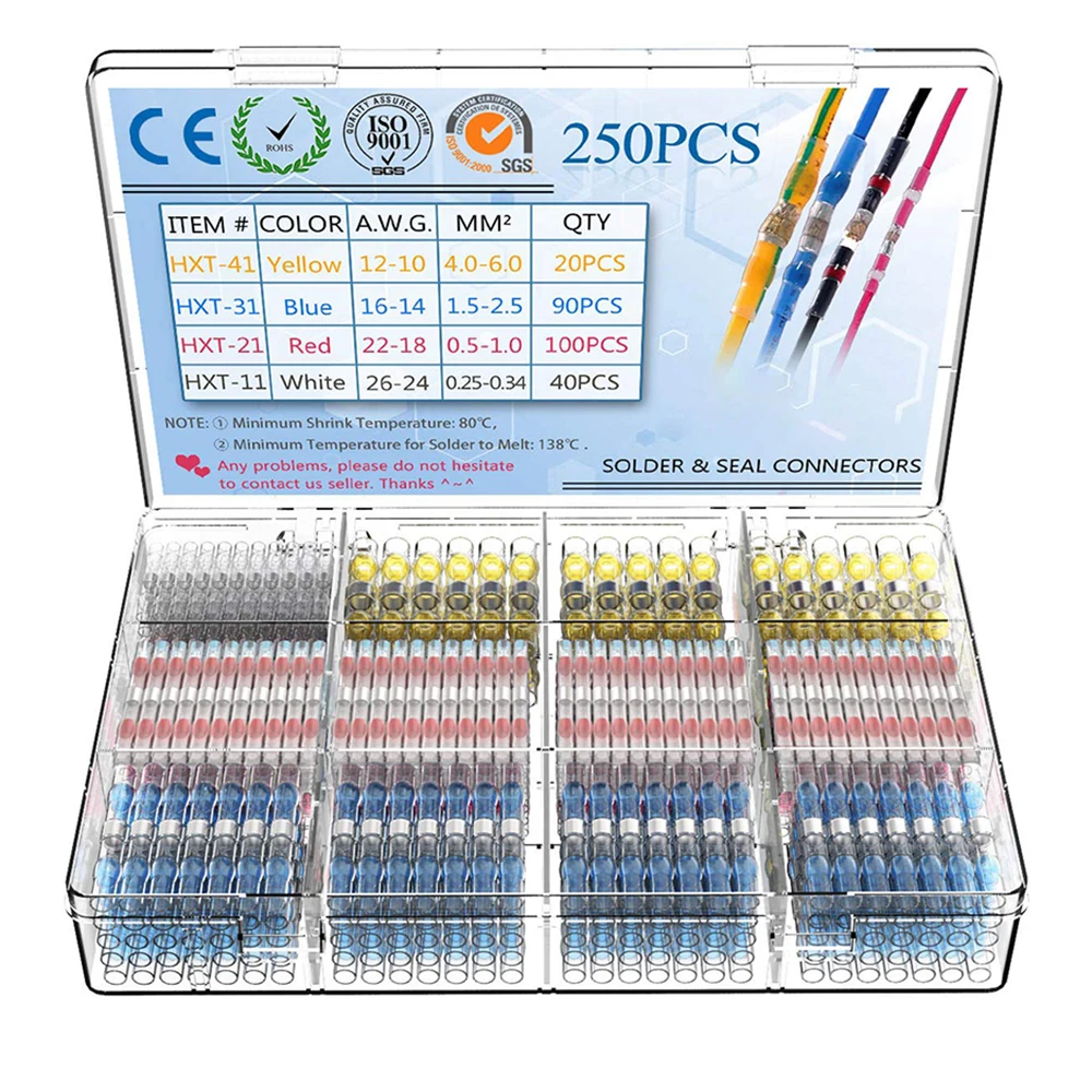 250/500 шт термоусадочные стыковые обжимные клеммы водонепроницаемые паяльные уплотнители электрические соединители комплект соединительных проводов автомобильный морской