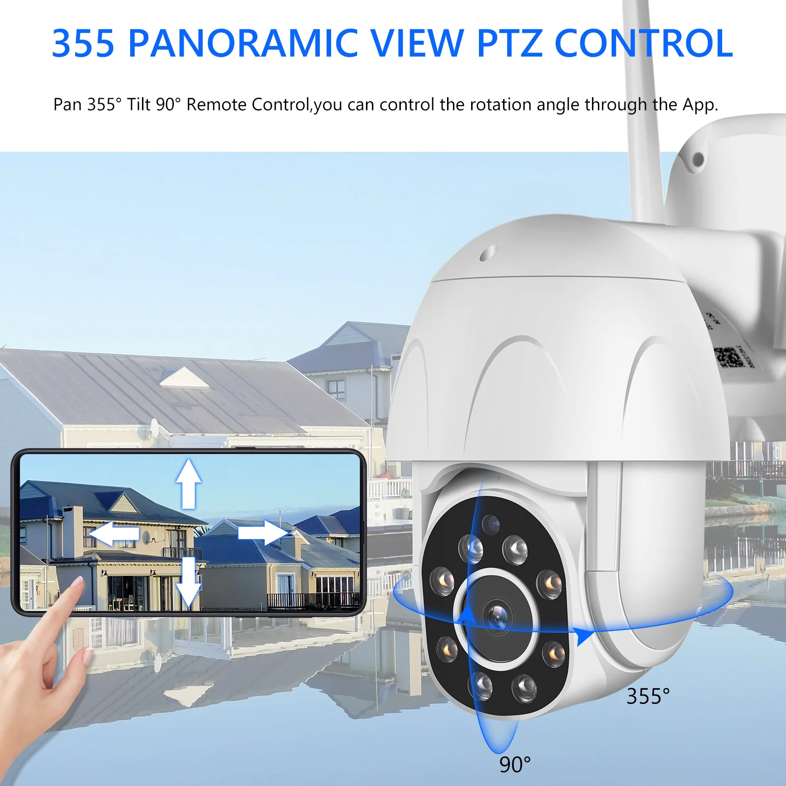 Широкое поле обзора:Максимальный диапазон вращения 355 ° по горизонтали и 90 ° по вертикали создают полное покрытие на 360 ° для увеличения видео, чтобы четко видеть детали, без слепых зон. Вы можете перемещать экран вверх, вправо и влево, чтобы увидеть, где вы хотите в любом месте.