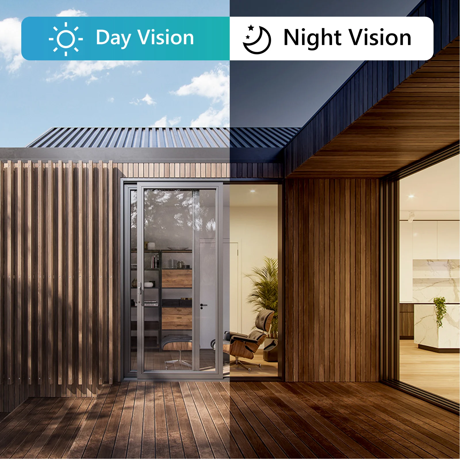 2MP HD видео и ночное видение:Наружная беспроводная камера 1080P (1920*1080) разрешение обеспечивает четкое качество изображения. 4 широкоугольных инфракрасных лампы в сочетании с 4 яркими светодиодными лампами обеспечат вам четкое цветное видео ночного видения, такое же цветное видео, как и дневное.