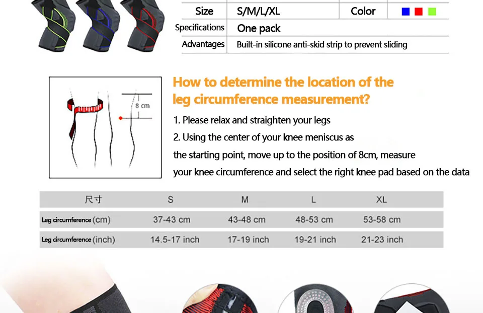1 шт. трикотажные компрессионные наколенники для предотвращения столкновений, баскетбольного футбола, бега, тяжелой атлетики, регулируемые профессиональные спортивные наколенники