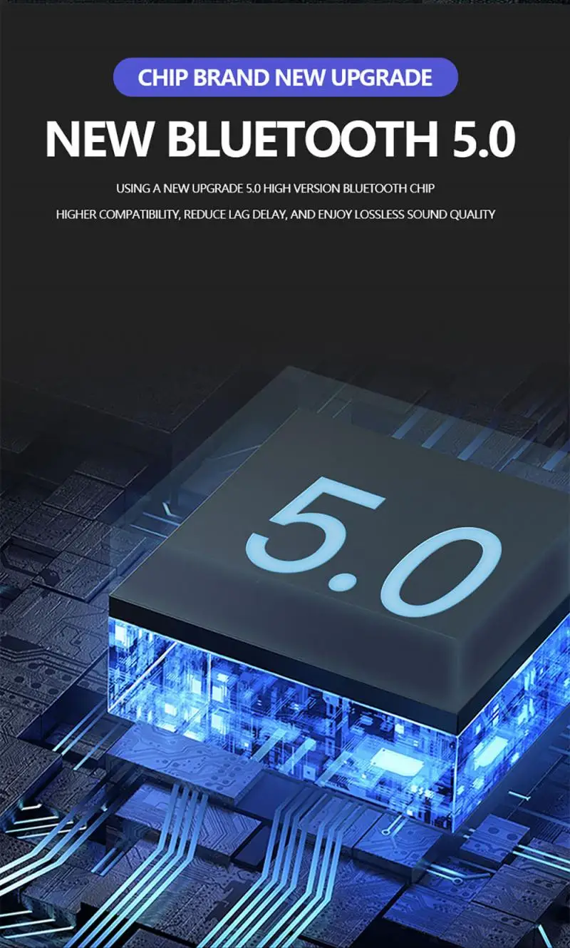 6. С Новинка Модернизированный 5,0 высокая версия Bluetooth-совместимый чип, он имеет более высокий уровень совместимости, уменьшает застрял задержки и пользуется без потерь качества звука