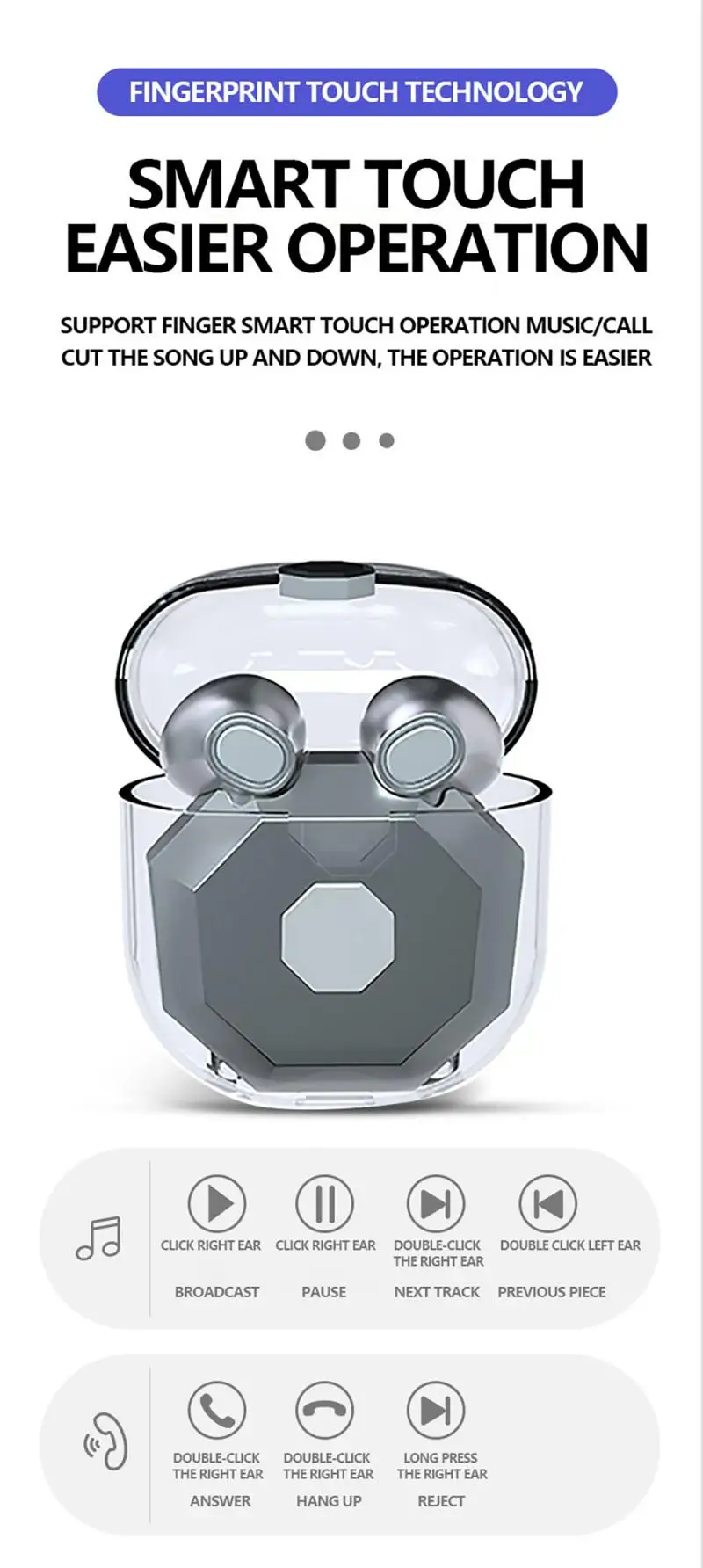 1. Шокирующее качество звука, интеллектуальное касание, Совместимость с Bluetooth 5,0, HD вызов, Автоматическое Сопряжение