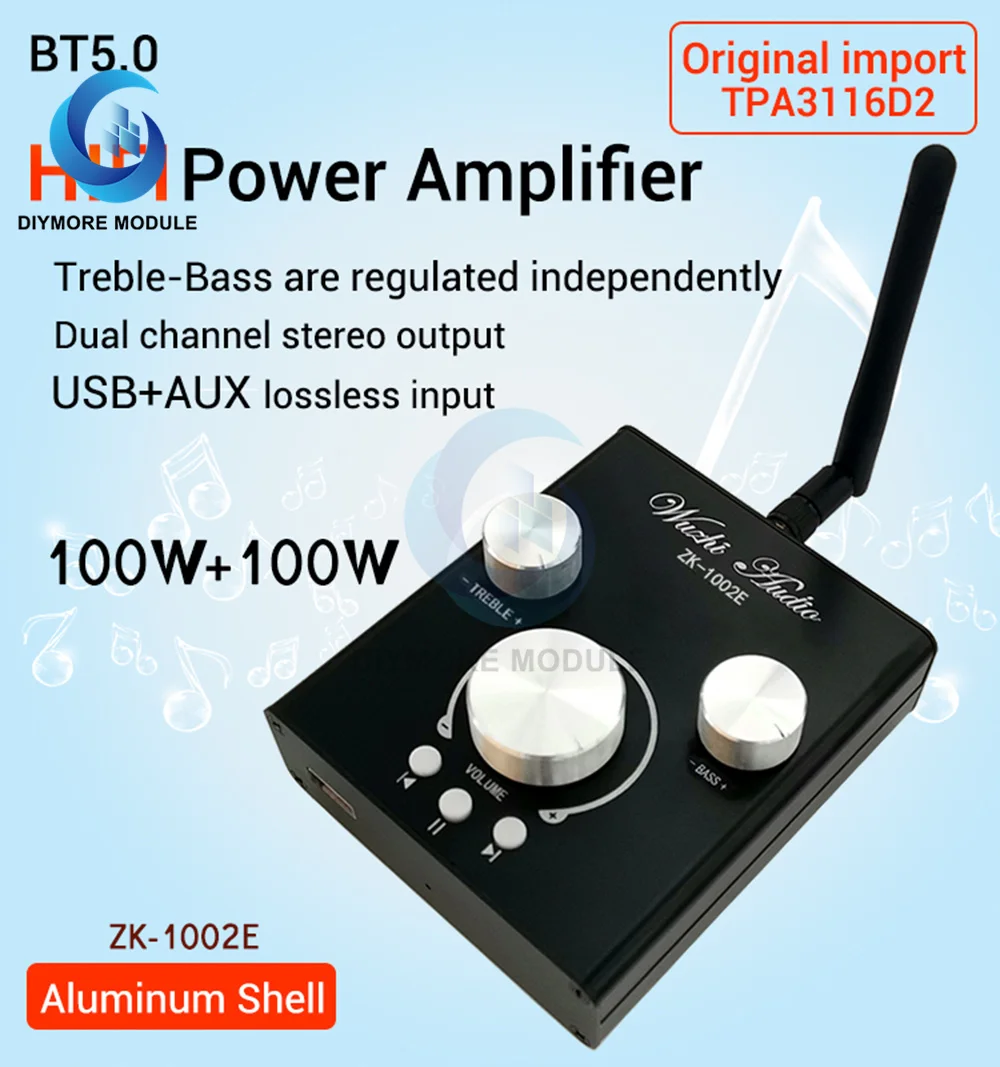 ZK-1002E 100 Вт + 100 Вт Bluetooth 5,0 TPA3116 двухканальный усилитель платы стерео усилитель усилителя