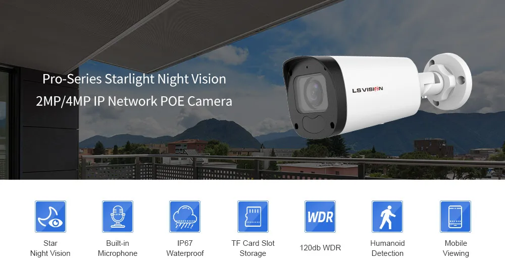LSVISION 4MP 2MP POE IP камера наружная полноцветная камера ночного видения 2,8 ~ 12 мм моторизованный зум Автофокус Пуля CCTV камера безопасности