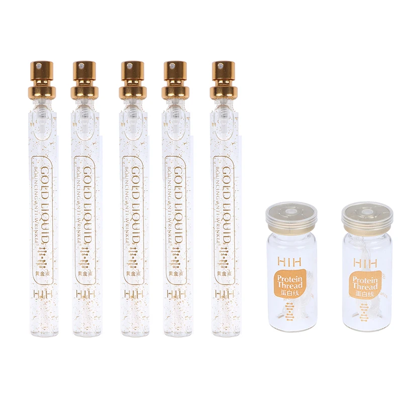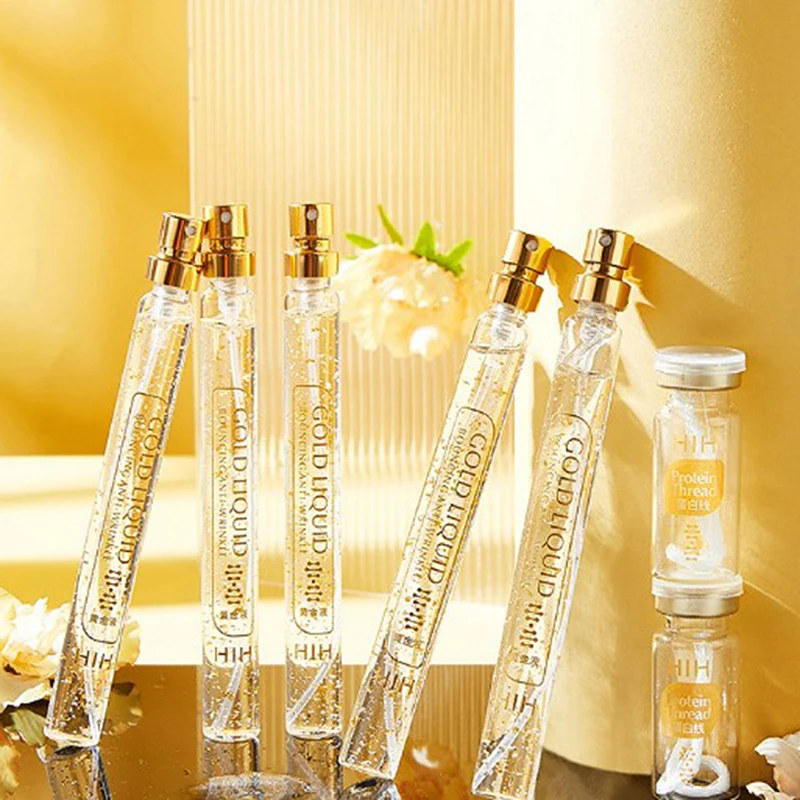 Золотой белок пептид эссенция набор коллагеновая линия + 24k Золотая эссенция жидкая увлажняющая против старения морщин Сыворотка для лица